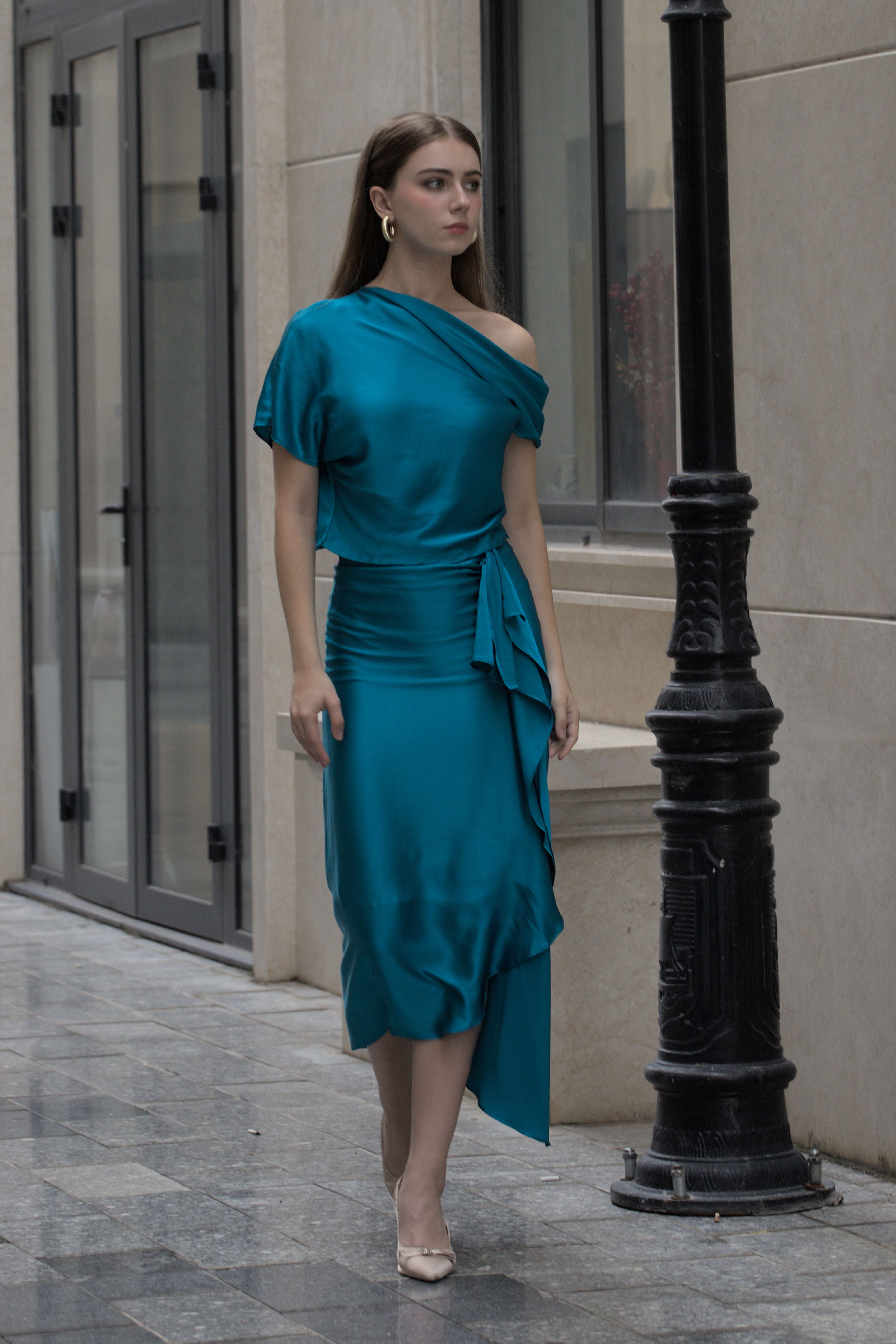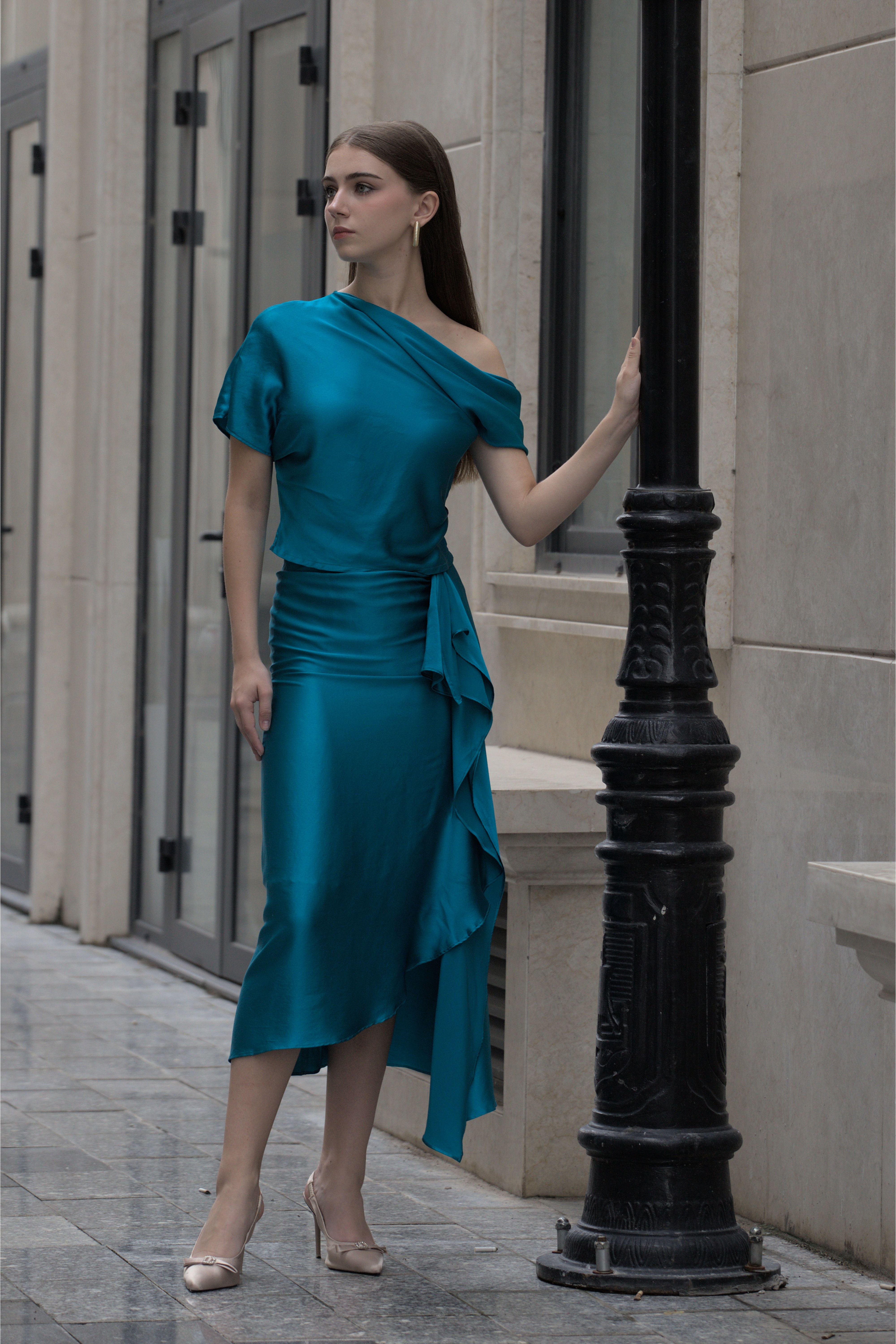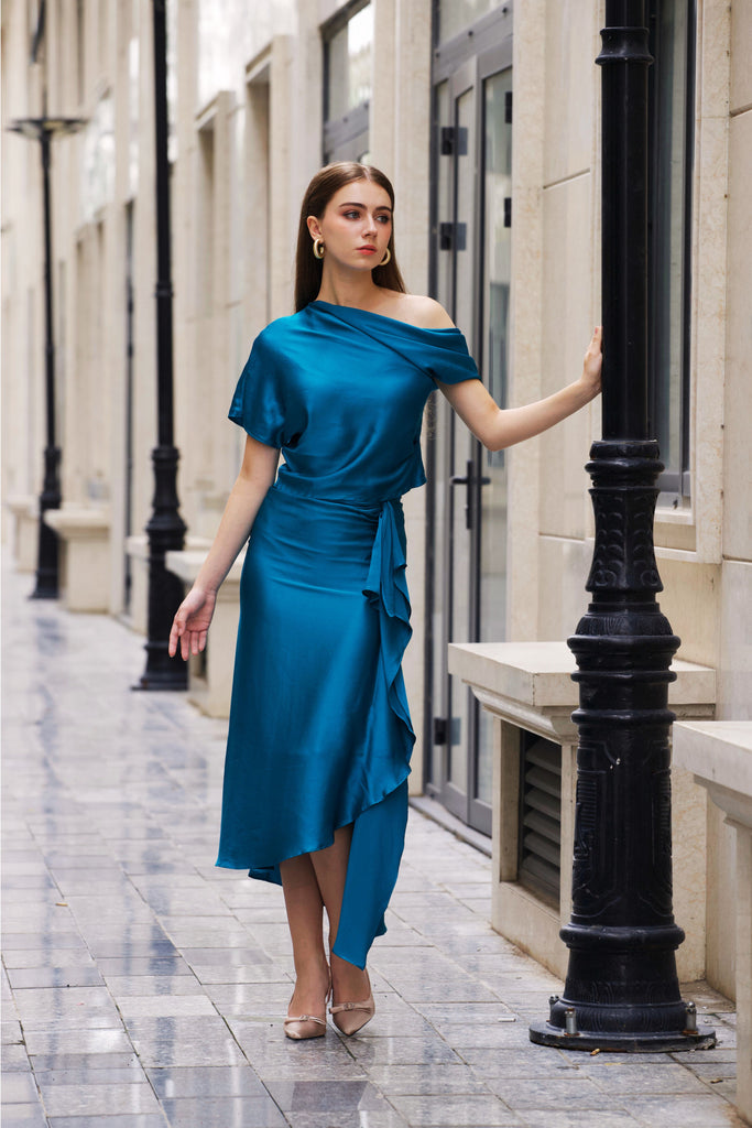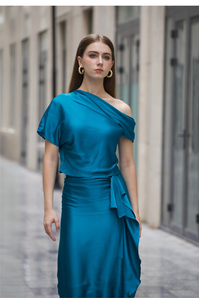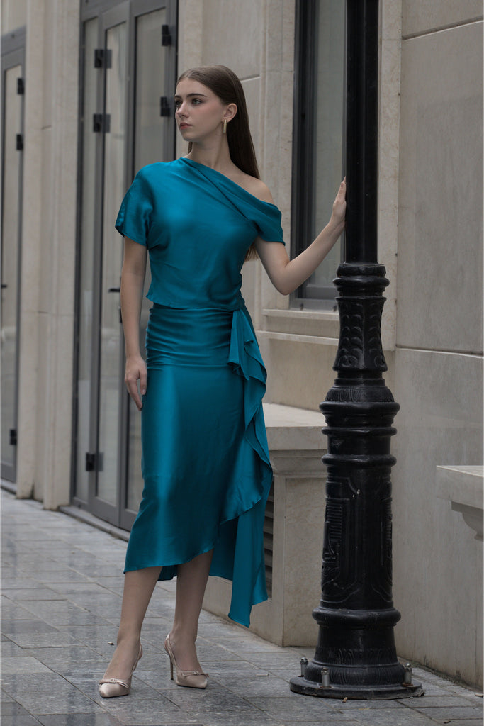 Asymmetric Ruffle Silk Skirt